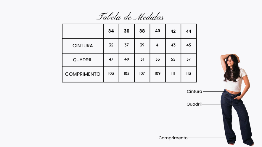 ♡ A calça pode ser usada como cintura alta ou baixa, caso queira que a peça fique cintura baixa, escolha um tamanho maior do que você usa.