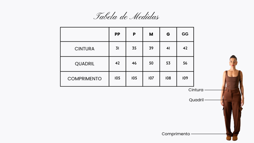 ♡ Caso deseje usar a peça cintura baixa, recomendamos pegar 1 tamanho a mais que o seu. Ex: se você veste P (36) e deseja que a calça fique mais cintura baixa, peça ela no tamanho M (38).