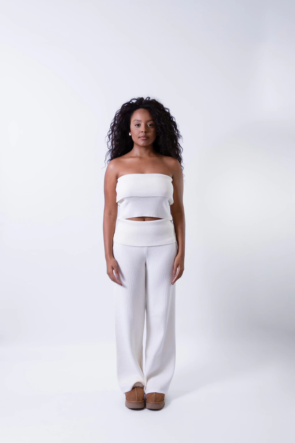 A Calça Tricot Jane é uma peça delicada e costurada a mão por mulheres.