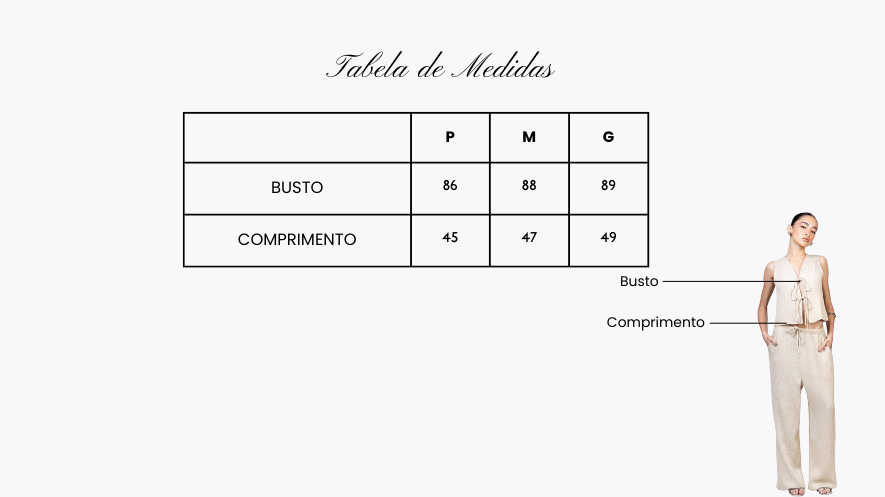 O Colete Lemon Texturizado chega com aquele toque moderninho que transforma qualquer look, leve, fresh e super em alta no verão! Com modelagem reta e decote V, ele tem amarras frontais duplas, que deixam o visual delicado, feminino e com aquele charme effortless que a gente ama. A textura do tecido traz movimento e um mood descomplicado, perfeito pra criar combinações fresquinhas! Ele é versátil e fácil de combinar! Uma peça que entrega estilo, leveza e muita personalidade, do jeito que a estação pede.