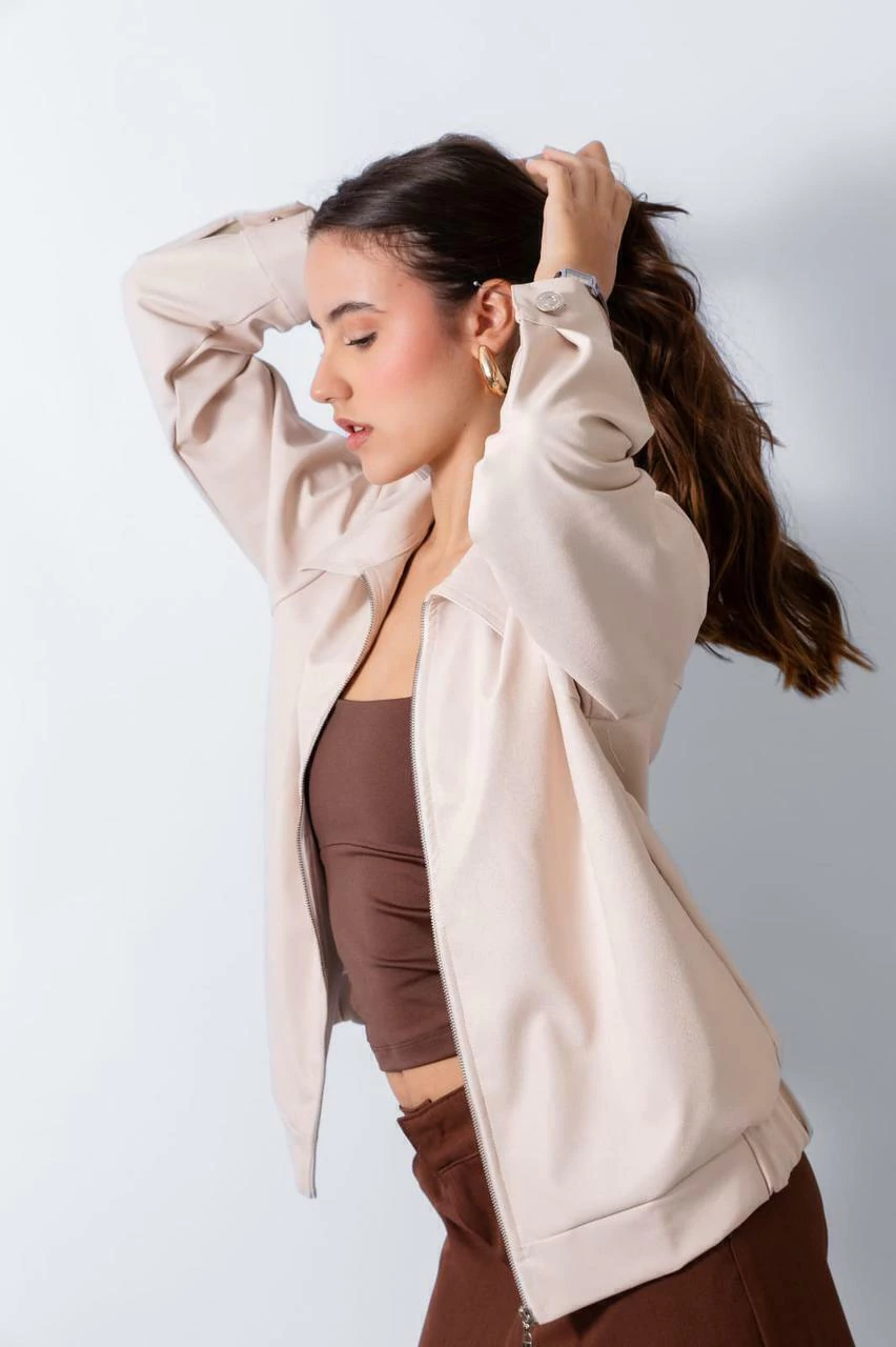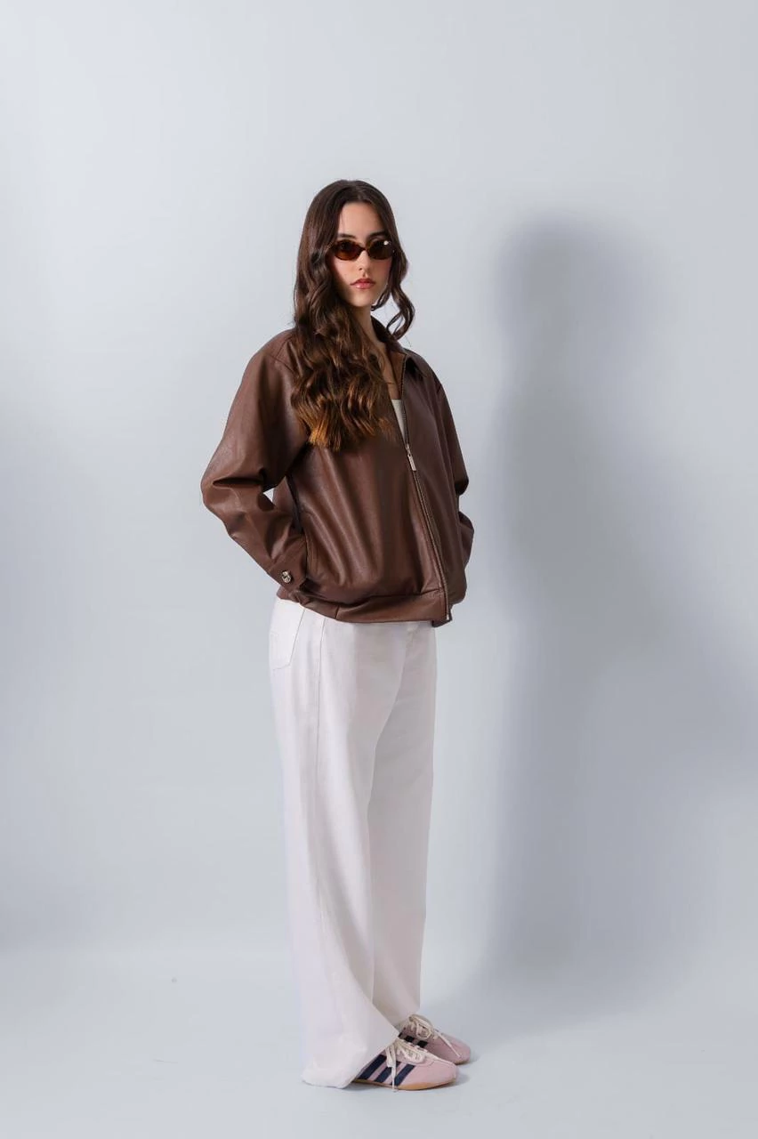 Nossa primeira jaqueta em couro PU traz uma estética imponente, minimal e atemporal. Com shape oversized, zíper frontal e gola clássica, ela carrega a força do statement fashion com acabamento impecável e forro em cetim. Escolhemos a dedo o couro PU de melhor qualidade, gramatura e textura, traduzindo aquele mood de "retorno do couro" que as hot girls amam!