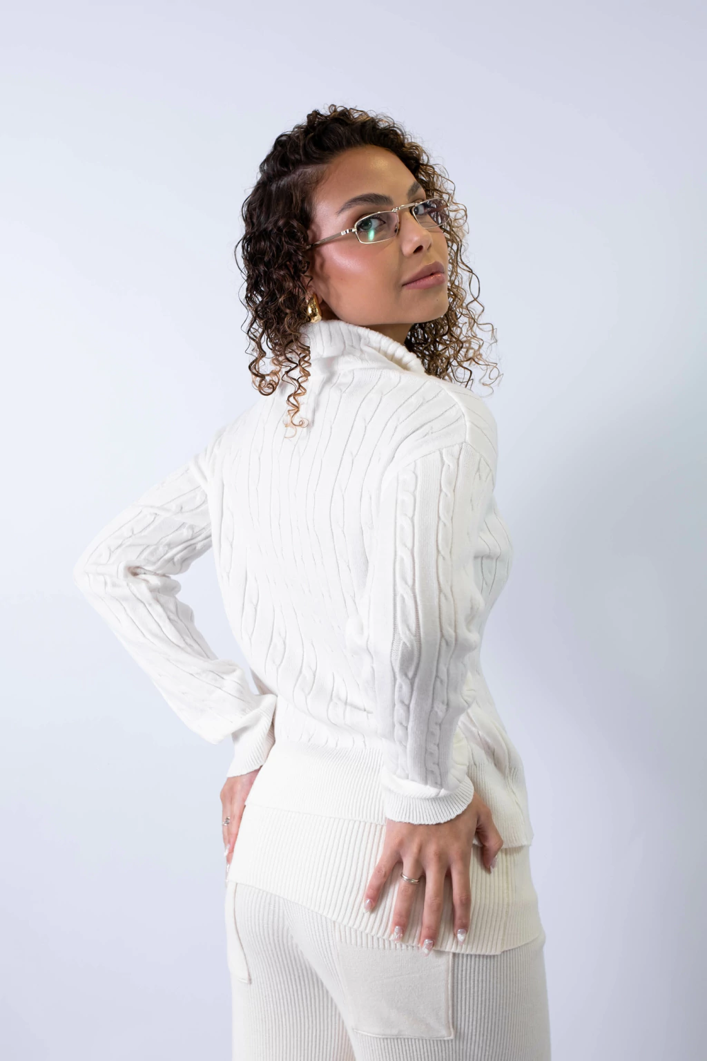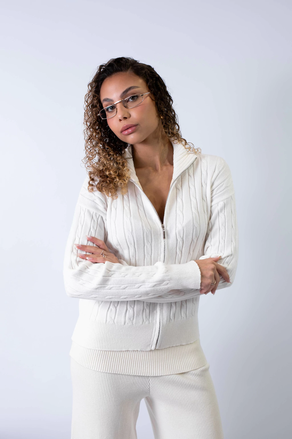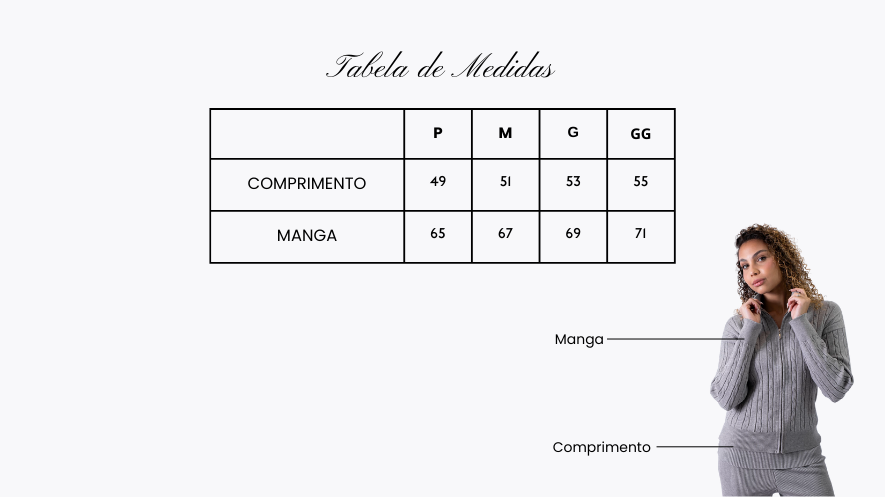 A Jaqueta Tricot Amy possui modelagem justa, alinhada ao corpo e muito confortável. Em tricot com textura trançada e tramas em relevo que trazem charme e sofisticação na medida certa. Com zíper frontal, ela mistura a vibe clássica com um toque esportivo, perfeita pra quem ama se sentir estilosa e quentinha ao mesmo tempo. Uma peça super versátil!