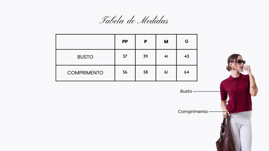 Trouxemos o modelo favorito do momento em tricot: A Polo Tricot Izzy contém uma gola estruturada e três botões, o modelo em tricot traz a elegância atemporal em duas cores irresistíveis, areia e vinho! O shape ajustado valoriza a silhueta, enquanto o acabamento impecável garante conforto e estilo. Perfeita para compor looks effortleessly chic, seja com jeans, saia de alfaiataria ou calça de tricot!