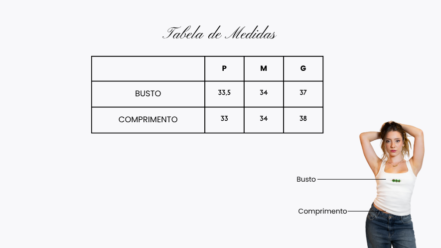 ♡ Giovanna usa P e suas medidas são: busto 82 cm, cintura 69 cm, quadril 96 cm e altura 1,63 cm.