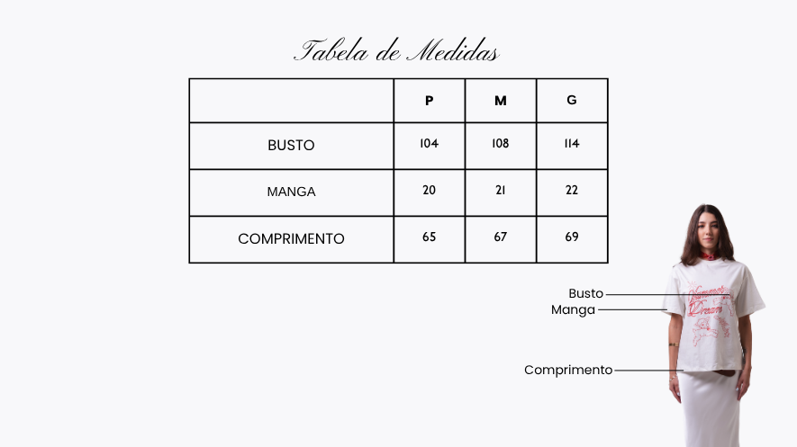 A T-shirt Summer Dream é o tipo de peça que transforma qualquer look básico em um fashion statement. Feita 100% em algodão, ela tem aquele toque macio e leve que a gente ama, ideal para o dia a dia com um ar effortless chic. O destaque fica para a arte exclusiva desenhada à mão, com traços delicados em vermelho que remetem o universo vintage fun! Com modelagem oversized, ela traz aquele caimento despretensioso que é a cara das it girls!