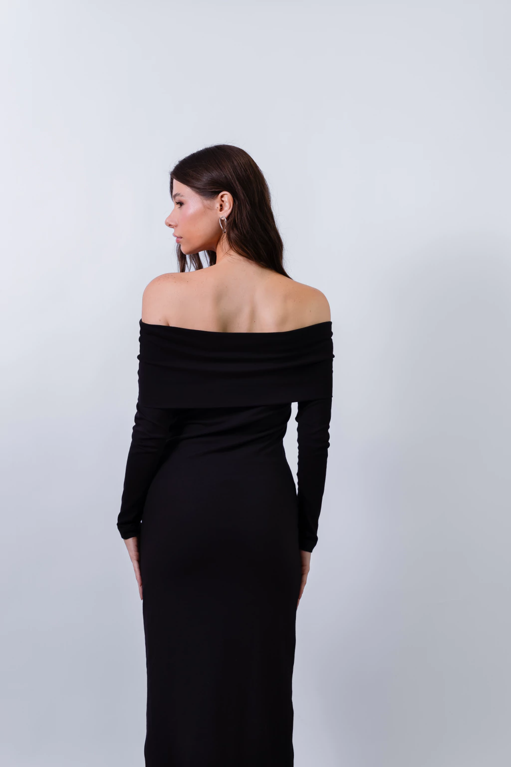 É o longo que abraça o corpo, sabe? Seu tecido é o nosso queridinho, feito em malha de algodão com elastano em duas camadas, ele tem o caimento dos sonhos - não marca nada e entrega a presença dos ombros. O seu decote ombro a ombro traz um ar elegante e moderno na medida, enquanto a silhueta alongada cria um visual poderoso e atemporal.